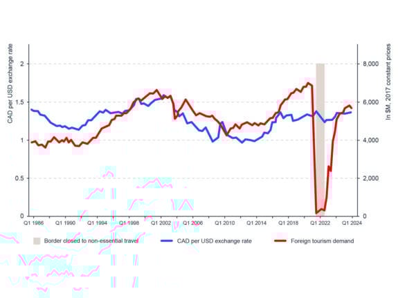 Source: Statistics Canada, Tourism demand in Canada, Table: 36-10-0230-01 and Bank of Canada