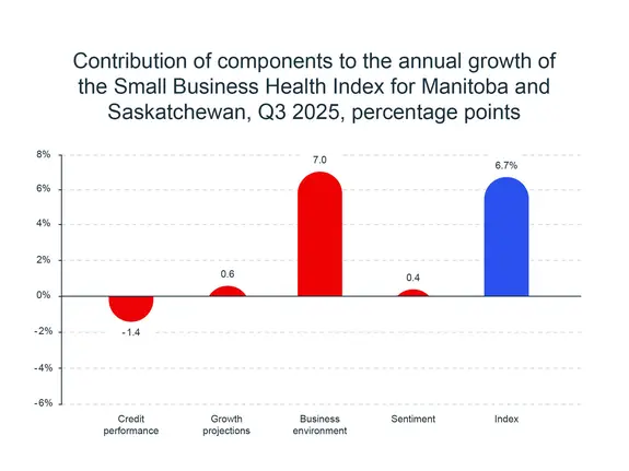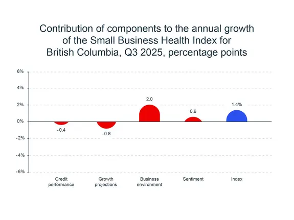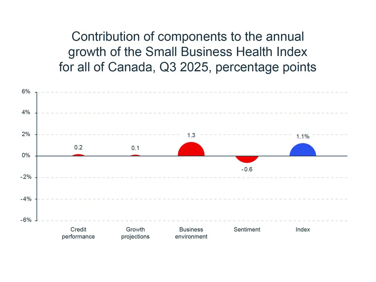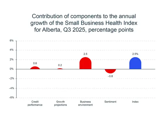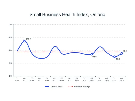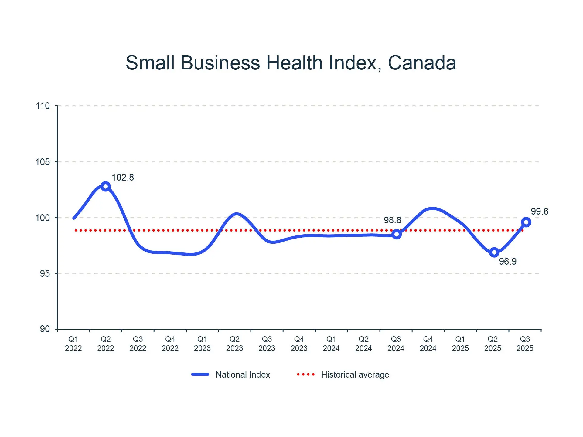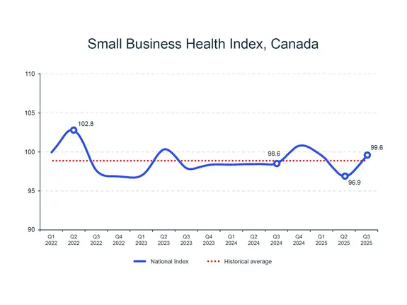 The index for Alberta rose to 103.4, a 5.2% quarter-over-quarter increase and the most significant uptick of any region in Q3 2025. This marked the highest level for the Alberta Small Business Health Index since its inception in the first quarter of 2022.