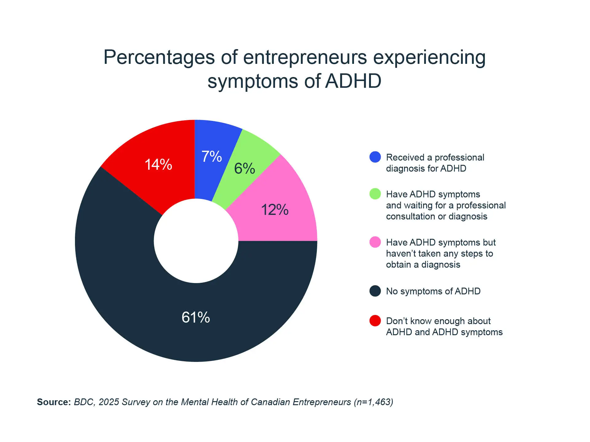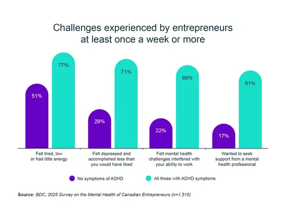 It’s with this in mind that we launched the 2025 edition of the annual Survey on the Mental Health of Canadian Entrepreneurs, where, for the first time ever, we asked questions about ADHD and its symptoms, with the goal of gaining a better understanding of the link between entrepreneurship and ADHD.