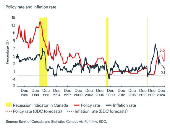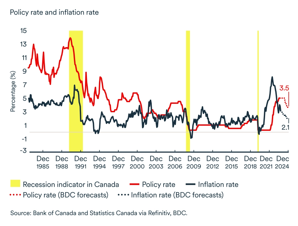 While we expect a soft landing for the Canadian economy in 2024, the outlook depends heavily on interest rates and inflation. Three elements, in particular, could worsen the picture and tip the economy into a mild recession.