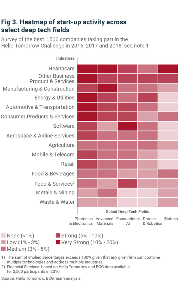 Deep technologies not only produce highly impactful businesses, but their influence is felt in every industry, often delivering game-changing benefits (Fig. 3). And, as their importance has grown, development and control over these technologies has become a critical national security issue as countries seek to gain advantage and exploit weaknesses in adversaries.