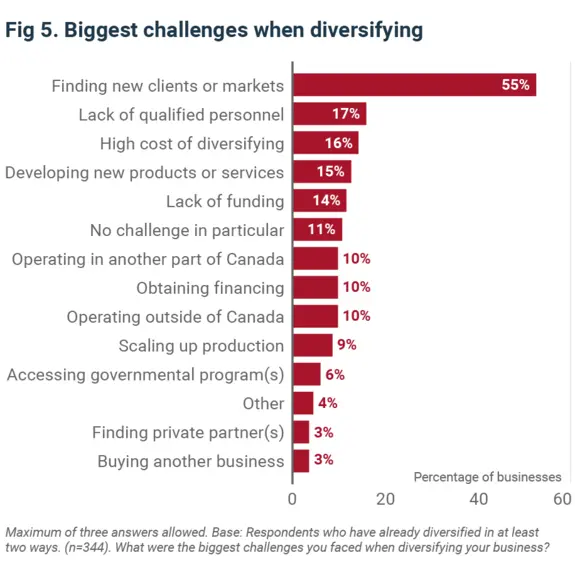 In a time of economic turbulence and uncertainty, entrepreneurs said finding new clients and markets was by far their biggest challenge in diversifying their business.