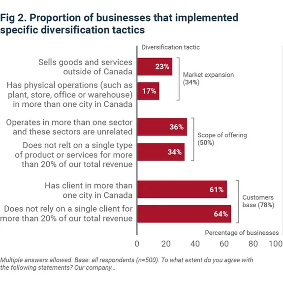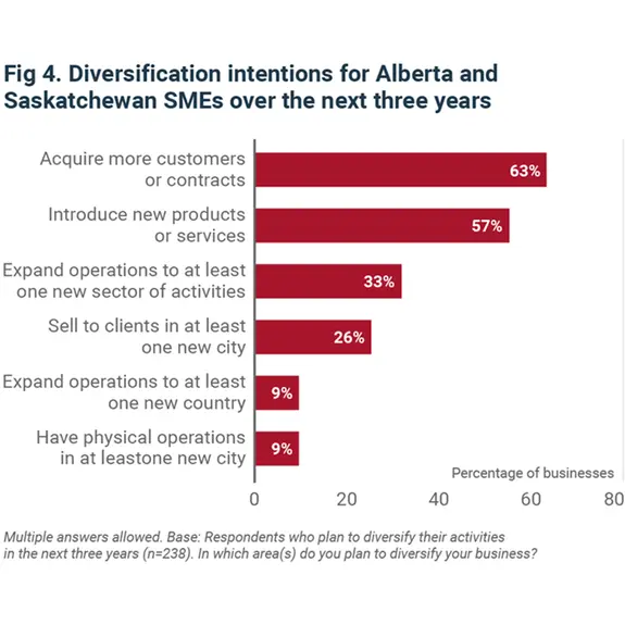 The survey of 500 business owners and decision-makers in Alberta and Saskatchewan found that diversified companies were twice as likely to have experienced high revenue growth (over 10%) during the previous year.
