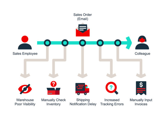 Consider this scenario. As a sales employee, you create a sales order and email it to a colleague. That colleague then manually enters the information into the accounting system to generate an invoice. From there, further inefficiencies may emerge: