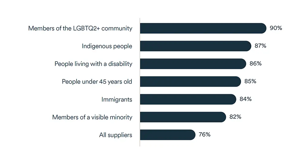 This is particularly true for entrepreneurs from diverse backgrounds. Members of the LGBTQ2+ community, people living with a disability, people under 45 years old, members of a visible minority, immigrants and Indigenous people were more likely to say that adopting ESG practices will benefit their business.