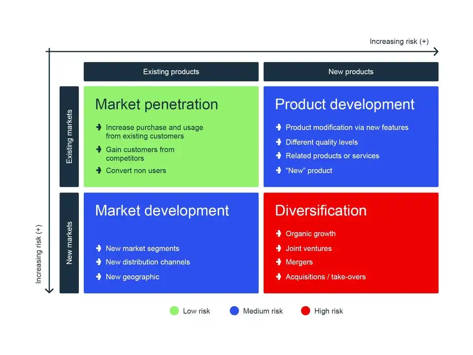 A useful strategic planning tool to help you think through this process is the Ansoff Matrix.