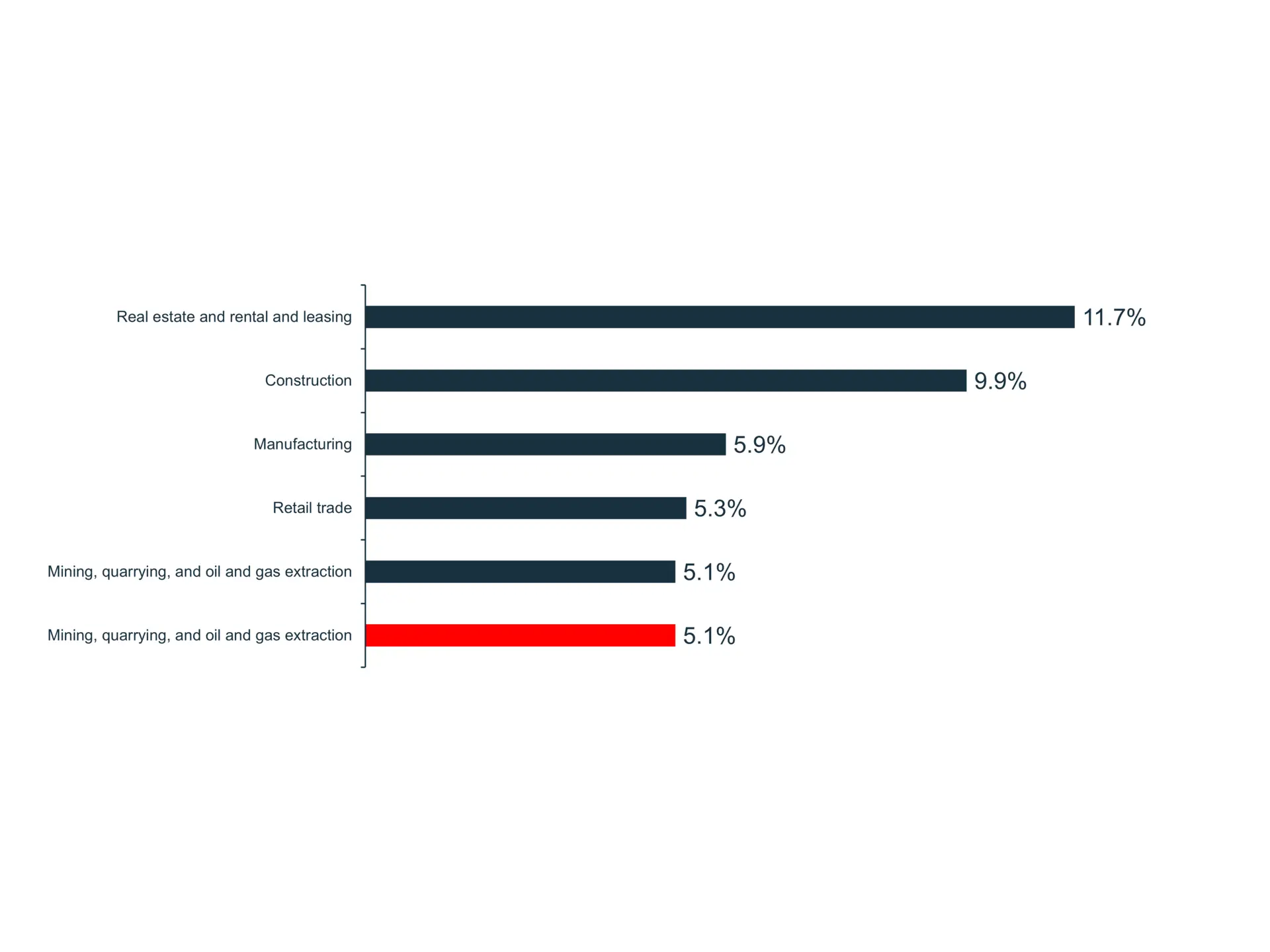 Reading grid: This graphic shows that the top five industries in the Indigenous economy are: real estate and rental and leasing; construction; manufacturing; retail trade; and mining, quarrying, and oil and gas extraction.