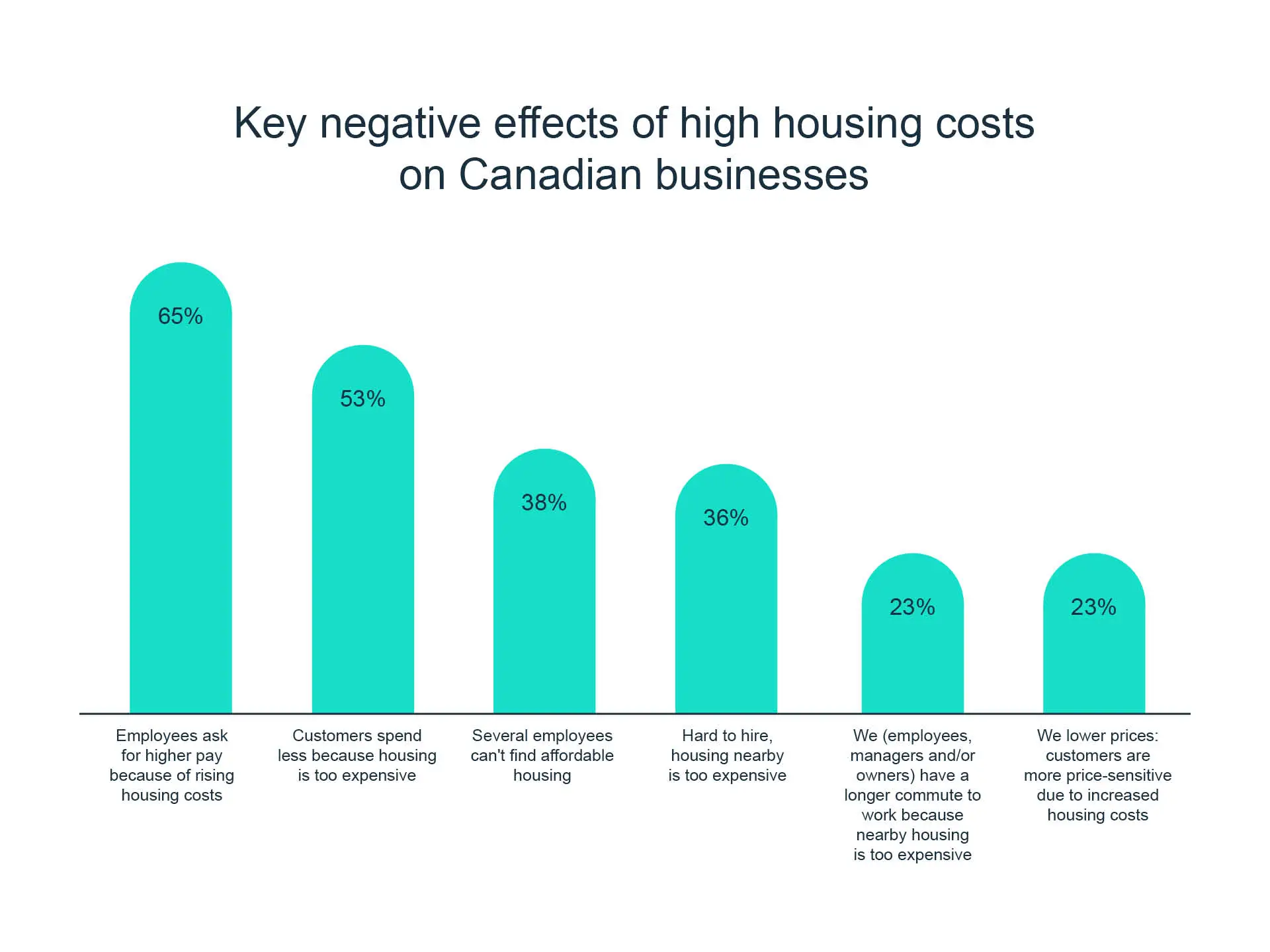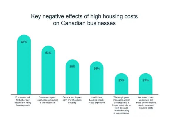 High housing costs reduce household purchasing power, which in turn affects businesses. According to a BDC survey conducted in November 2025, 50% of business owners report feeling the negative effects of high housing prices. For example, salaries are going up, while customers are spending less. Nearly a quarter of businesses even reported lowering their prices due to the high cost of housing.