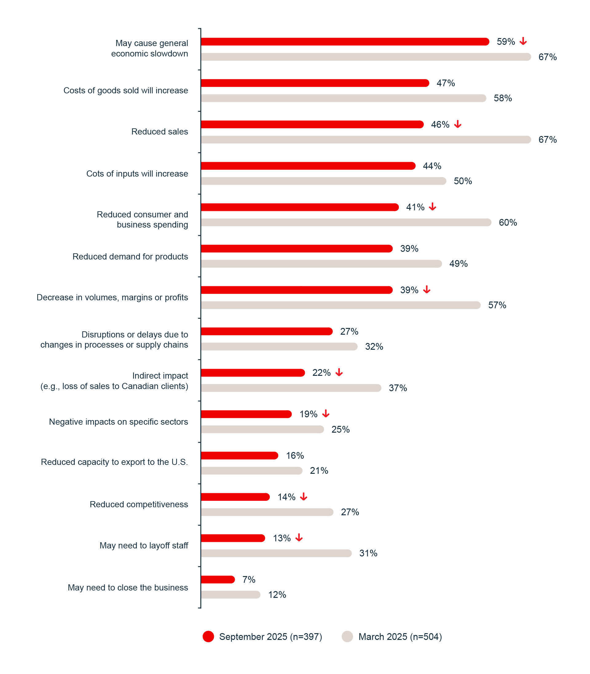 Lingering but lower-ranked concerns included consumer and business spending reductions, decreasing volumes, margins or profits, and diminishing competitiveness.