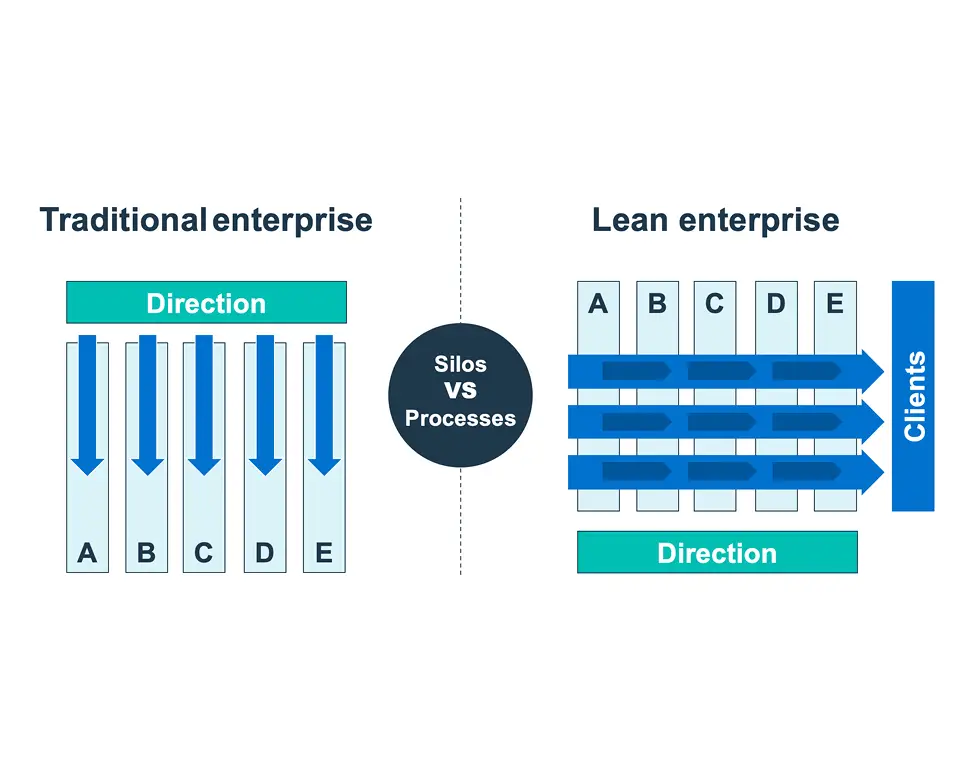 - Eliminating silos through cross-training and implementing open workspaces that favour collaboration