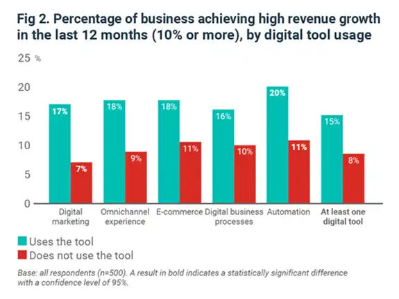 85% of companies that achieved high revenue growth (over 10%) in the previous year used at least one digital technology.