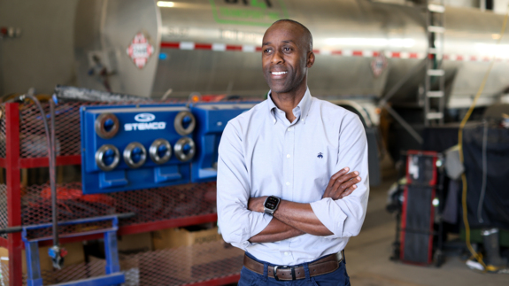 With a single truck and a clear vision, Bizimana drew on his experience in accounting and in the oil and gas sector to build a business that operates over 300 different pieces of equipment, such as power units and trailers, and employs over 120 people.
