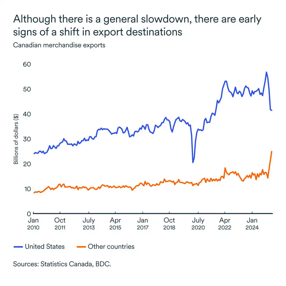- Canada's renewed effort to diversify its export markets seems to be off to a good start. The country looks to be increasing trade with countries other than the U.S. At the same time, the craze for buying Canadian and local products continues. Make sure your company has a strategy to capitalize on these trends.