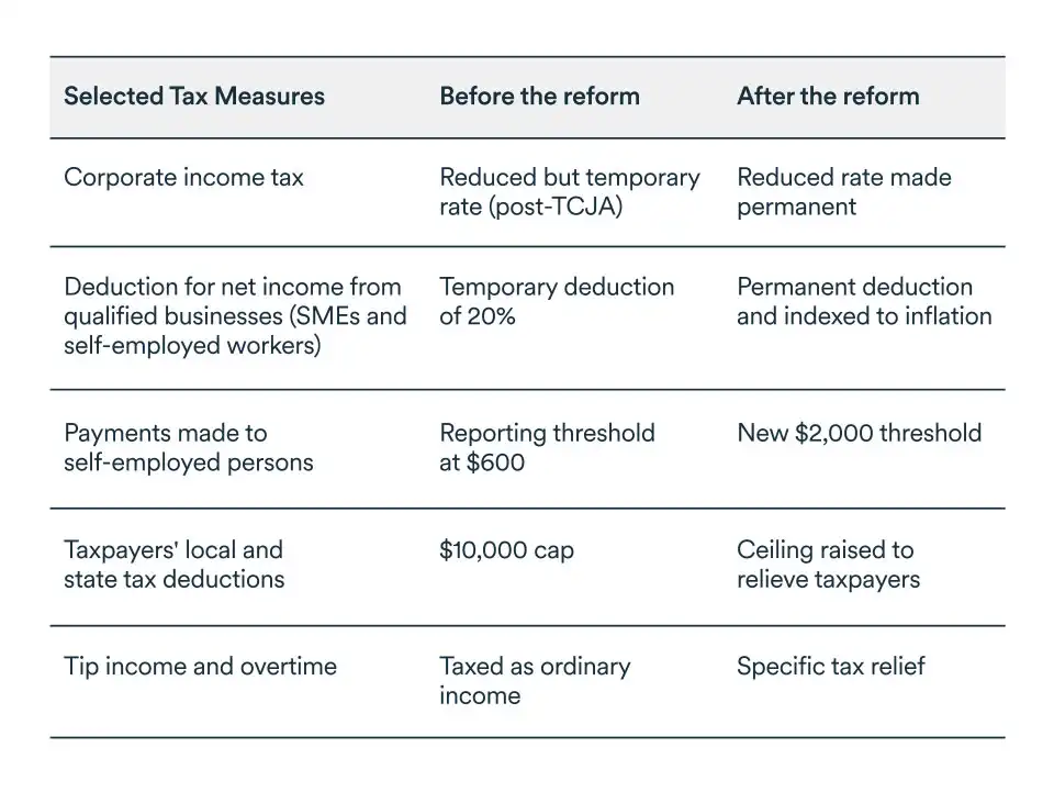 However, most of the measures will have little direct impact on Canadian businesses. Several are a continuation of a tax reform enacted by the first Trump administration. This is notably the case for a reduction of the federal corporate income tax rate from 35% to 21% that came into effect on January 1, 2018. It had been due to expire at the end of this year but was extended in the new law.