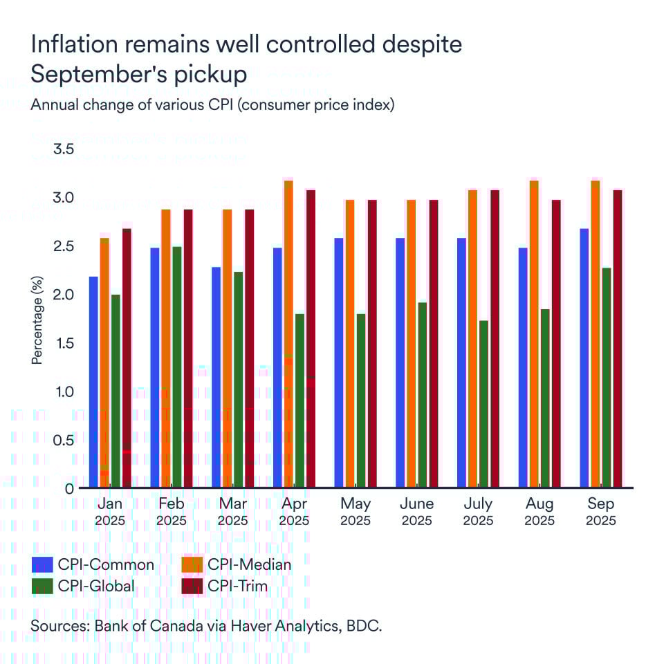 The Bank of Canada cut its key interest rate again in October to 2.25%—the bottom of the neutral range—which will continue to support household consumption, but Canadians should not expect further cuts, at least in the short term.
