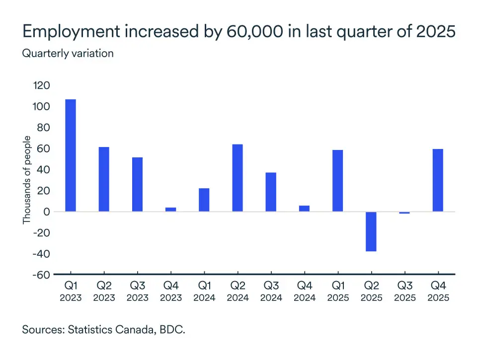 Ontario's economy ended 2025 on a positive note. Employment rose by 13,000 jobs in December, increasing the total for the fourth quarter to 60,000. These gains offset the significant losses caused by tariffs imposed on the steel and automotive sectors earlier in the year.