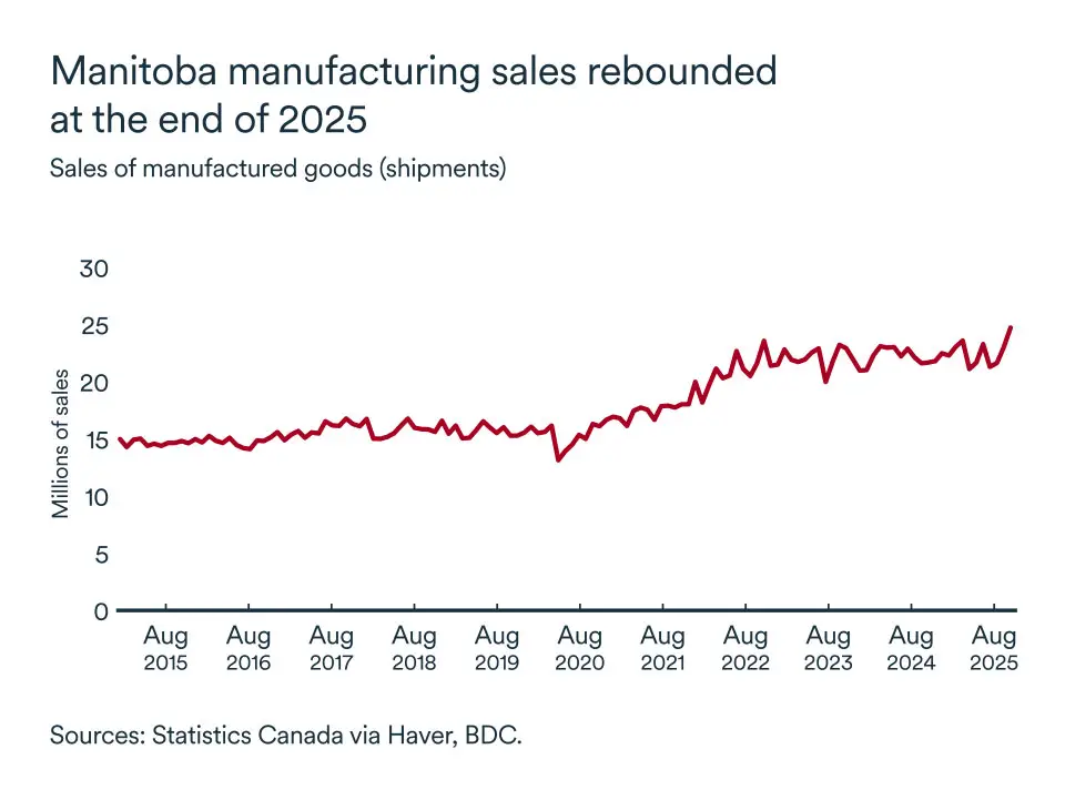 Manitoba’s economy is forecast to grow modestly by around 1.0% in 2026, reflecting ongoing tariff-related headwinds and weaker capital investment. Retail sales have flat-lined, with recent data indicating steady but muted consumer spending through late 2025.