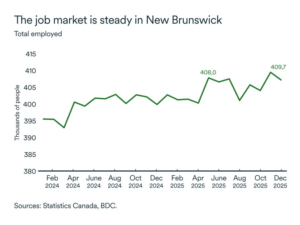 New Brunswick’s economy slowed in 2025 as uncertainty and tariffs hurt trade and consumer confidence. Exports fell by 9.1%, impacting manufacturing production.