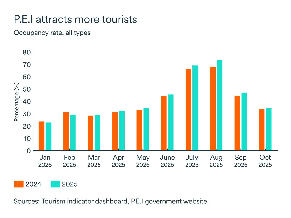 As tension rose between the Canada and the U.S., the province was able to attract more tourists in 2025. Occupancy rates were higher each month during peak season, supporting economic growth in the island.