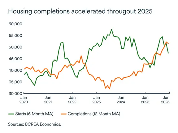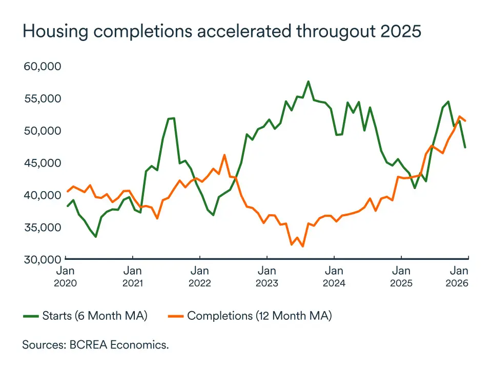 Consumers continued to spend despite trade tensions. While retail sales were choppy in 2025, they stayed higher than 2024 levels. Households on the island should continue to spend as labour market conditions stabilize.