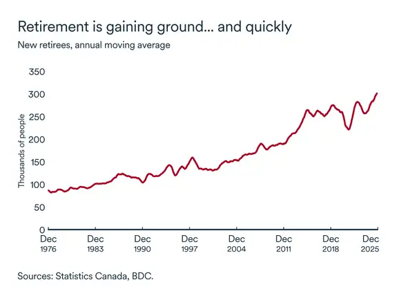This reflects one of the most important structural changes affecting the Canadian economy. While demand for goods and services is slowing, the supply of workers is also declining, due to lower population growth and accelerating retirements.