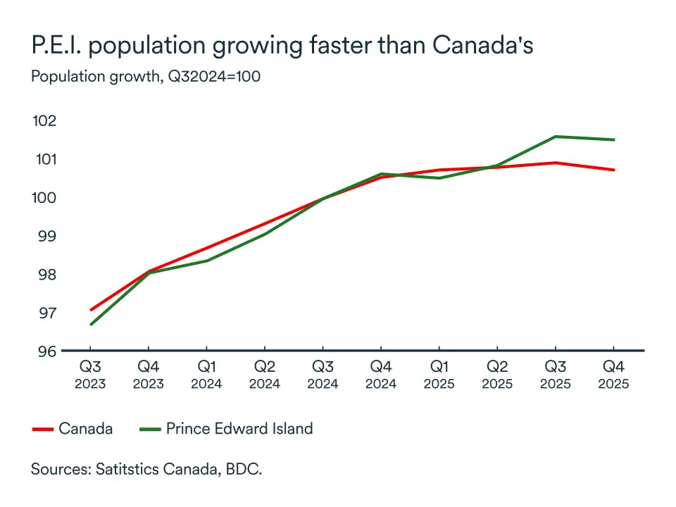 The island continued to attract newcomers in 2025. Population growth was faster in P.E.I. than in Canada as a whole. This should support demand for goods and services, as well as homes in the province.