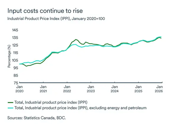 Input costs continued to rise for most businesses. Excluding energy, industrial product prices rose 5.8% in 2025.