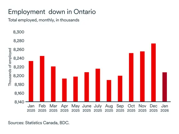 Ontario's economy lost 66,500 jobs in January. The losses contrast with the strong employment performance recorded in the second half of 2025.