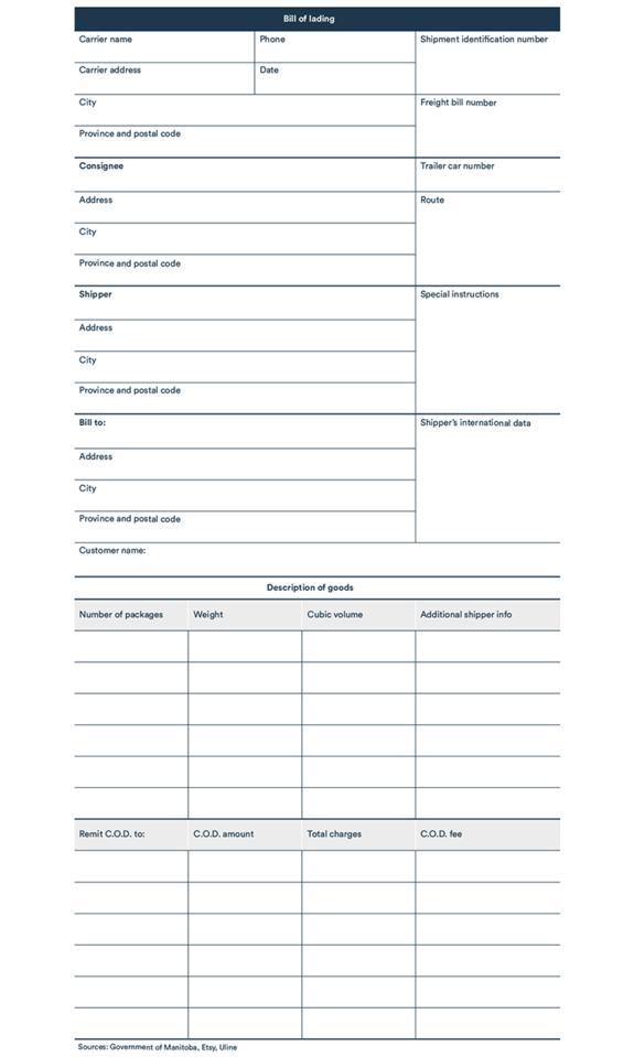 Keep your bills of lading and related paperwork to your imports and exports for five years, in case of an audit by the Canada Border Services Agency.