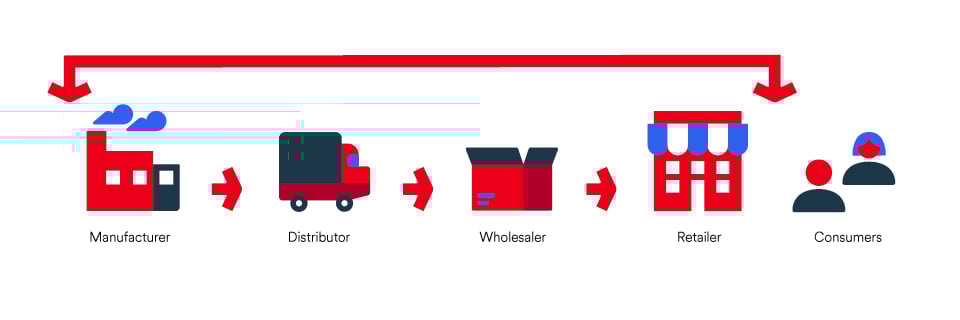 This image illustrates the business-to-business value chain. The chain ends at the retailer and does not include consumers.