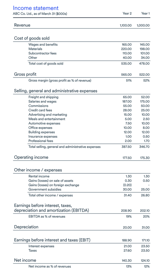 In the income statement below, COGS for ABC Co. Ltd was $535,000 in Year 2 and $478,000 in Year 1.