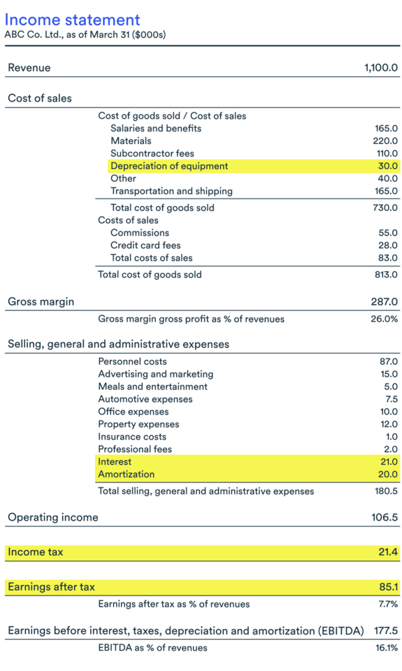 EBITDA is your company’s earnings before interest, taxes, depreciation and amortization. Generally speaking, it doesn’t appear on your income statement. It’s a measure that must be calculated by adding up the various data found on your income statement, namely: