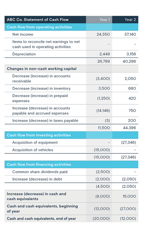 While free cash flow does not appear as a line on a financial statement, the figures required to make the calculation can be found on a company’s cash flow statement (sometimes called the statement of cash flow or the statement of changes in financial position) and income statement. Using the example of ABC Co. below, in Year 1, we calculate free cash flow as follows:
