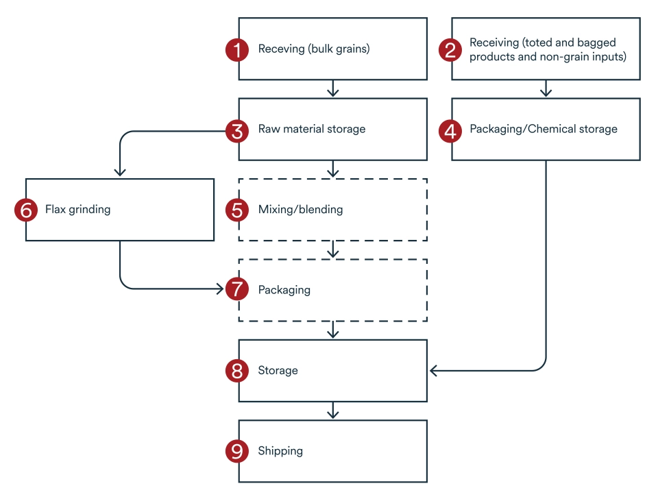 - receiving and warehousing of raw materials, as well as ingredients and packaging materials