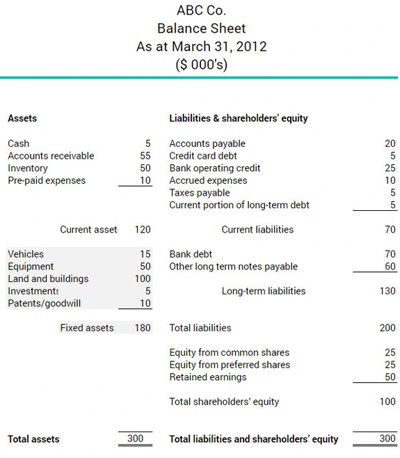 The balance sheet below shows that ABC Co. owned $180,000 in long-term assets as of March 31, 2012. With $130,000 in long-term liabilities, the company had $1.40 in long-term assets for every $1 in long-term debt; this is a healthy balance.