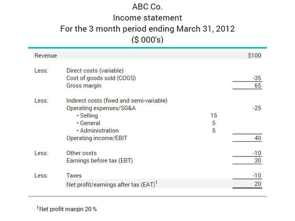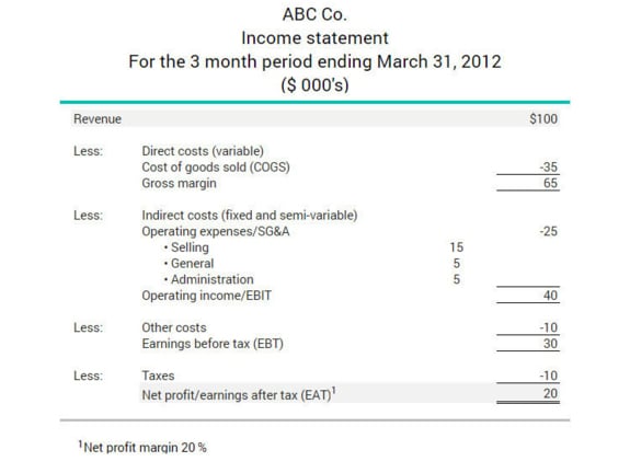 From the income statement below, ABC Co.’s earnings after taxes are $20,000 and its net revenue is $100,000. The net profit margin ratio is calculated as follows: