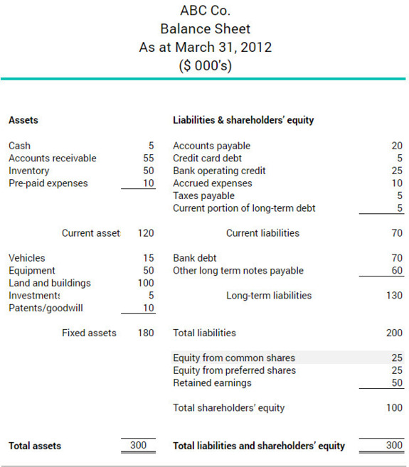 Both common and preferred shares appear under shareholders’ equity on the balance sheet, as shown in the sample below: