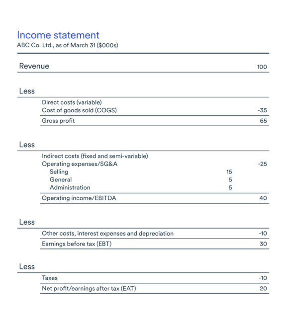 - Cost of goods sold: Direct expenses related to producing goods or services.
