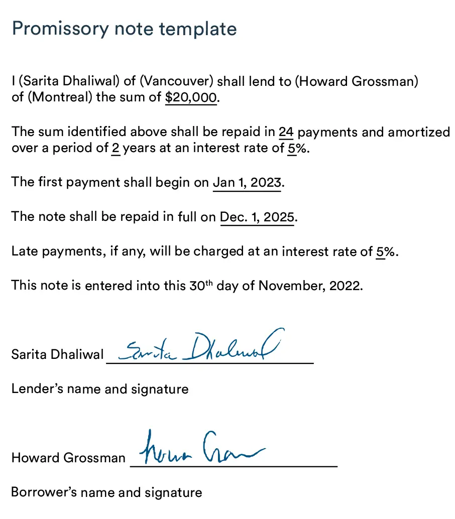 Promissory note example