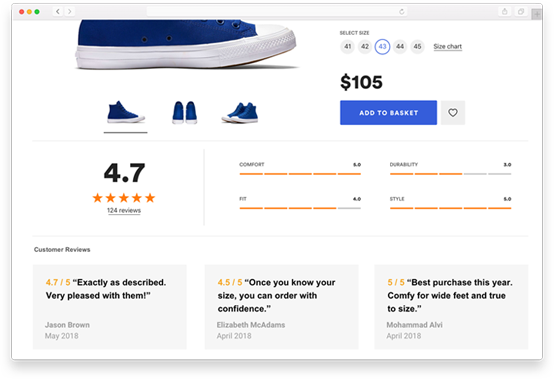 Social proof is the idea that people follow the lead of others. Endorsements of your products from customers, experts, celebrities or organizations give psychological comfort to visitors that they’re making a good choice buying from you.