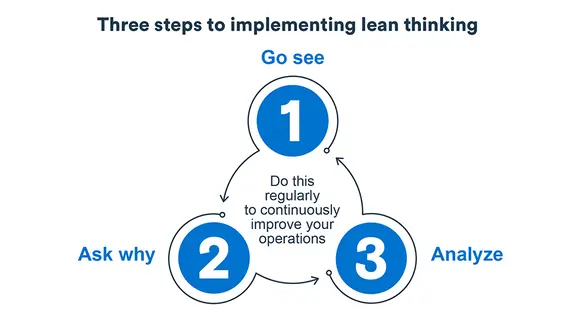 Lean is a methodology focused especially on reducing waste—i.e. non-value-added activity in a business. It’s often associated with manufacturing, but it can be used for any kind of company. Lean uses three steps to eliminate waste.