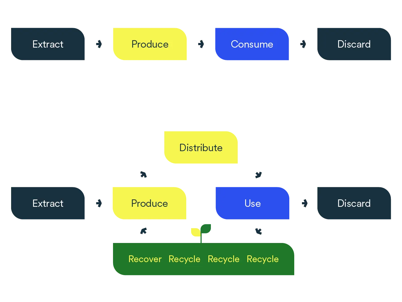 For businesses, it’s a model that rethinks production processes to maximize resource efficiency and minimize waste. The circular economy is based on a closed-loop economy where generated waste is reintroduced in production processes. It encourages businesses to recognize that everything has value and to keep products, materials and resources in use for as long as possible.