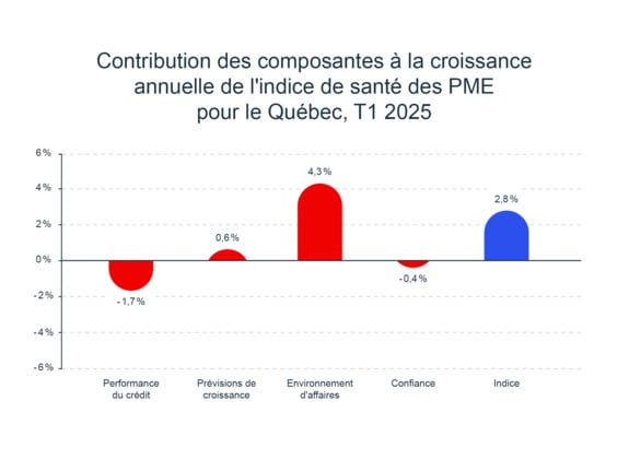 Un environnement d’affaires et des projections de croissance favorables ont contribué à une hausse d’une année à l’autre de l’indice du Québec, signe d’une santé relativement bonne des entreprises de la province. La normalisation des courbes de taux d’intérêt et le retour de l’inflation dans la fourchette cible ont également apporté une certaine stabilité dans une conjoncture économique marquée par une très grande incertitude. De plus, la baisse des taux d’intérêt a fait augmenter le fonds de roulement des entreprises et amélioré leur capacité de rembourser leurs dettes plus abordables.