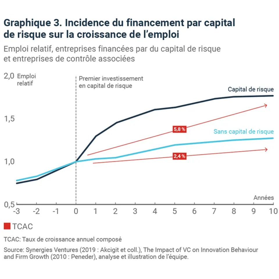 De plus, des études ont révélé que les entreprises financées par du capital de risque génèrent beaucoup plus d’emplois et de revenus.