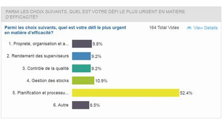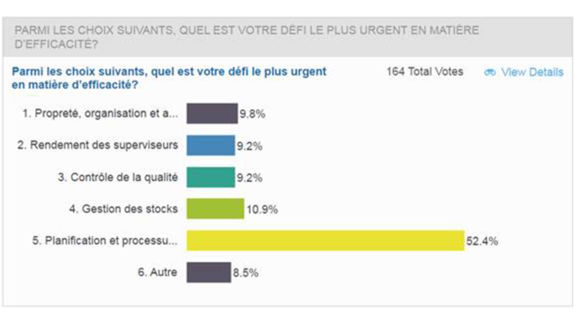 En novembre 2016, BDC a tenu un webinaire en direct à l’échelle nationale, au cours duquel on a demandé aux participantes et participants quel était leur défi le plus urgent en matière d’efficacité. L’organisation du lieu de travail constituait le défi le plus urgent pour 9,8 % des propriétaires d’entreprise qui ont participé.