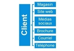 Les entreprises ont donc adopté ce qu’on appelle le marketing multicanal. Elles utilisent diverses méthodes pour atteindre et servir la clientèle ainsi que les prospects: magasin, brochure, marketing par courriel, site Web, service à la clientèle téléphonique, Facebook, LinkedIn.