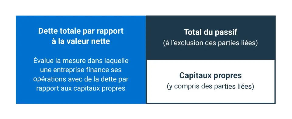 Comparer le total du passif aux capitaux propres montre dans quelle mesure une entreprise finance ses opérations avec de la dette par rapport aux capitaux propres.