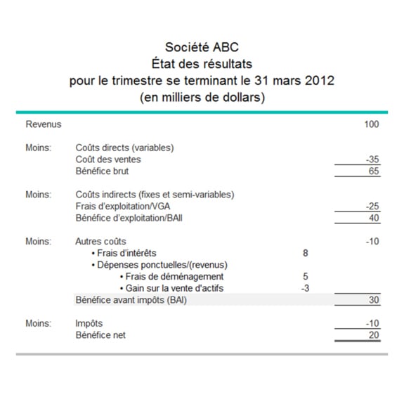 L’état des résultats ci-dessous démontre le bénéfice avant impôts d’une entreprise de gros cumulant des revenus de 100 000 $.