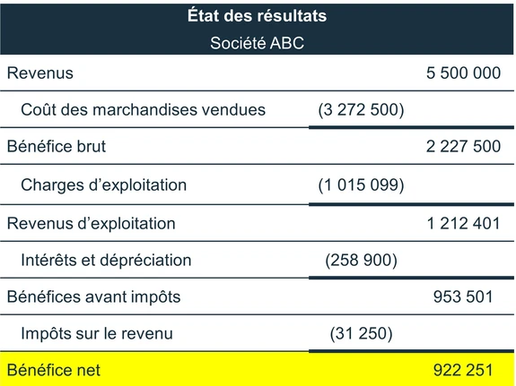 Exemple d’un état des résultats où l’on trouve le bénéfice net: