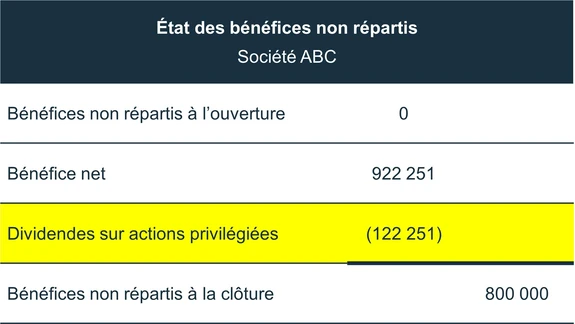 - Les dividendes sur les actions privilégiées se retrouvent dans la section de l’état des bénéfices non répartis.